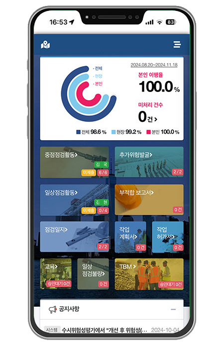 이도는 위험성 평가, TBM, 작업중지 등 중대재해를 예방하기 위한 스마트 통합 솔루션을 제공합니다.